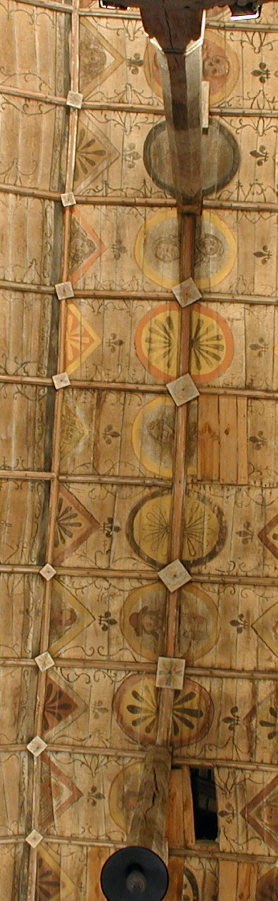 Ses 92 visages peints sur un lambris de bois de châtaignier en forme de coque de vaisseau renversée, ont été réalisés en 1634 , d’après un cartouche peint sur la voûte, par Jean Julian, peintre, et Julien Vérité qui était alors chirurgien et procureur de la « Fabrique ».