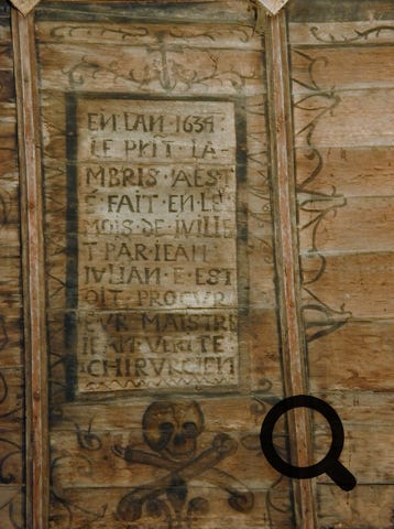 Certains visages sont parfois accompagnés d’initiales F C H ou B O, ce qui pourrait supposer que certains personnages auraient pu payer le peintre ou le Procureur pour être représentés sur la voûte…