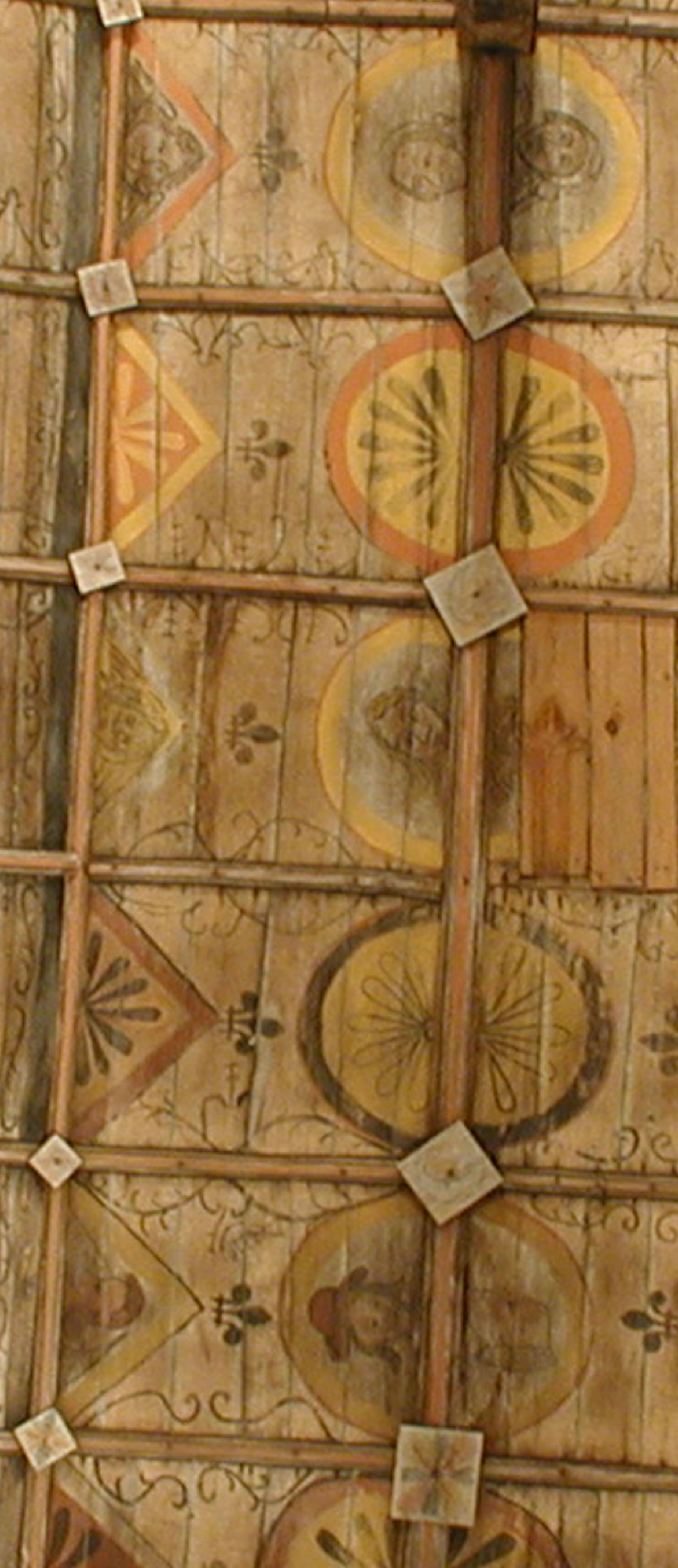 Ses 92 visages peints sur un lambris de bois de châtaignier en forme de coque de vaisseau renversée, ont été réalisés en 1634 , d’après un cartouche peint sur la voûte, par Jean Julian, peintre, et Julien Vérité qui était alors chirurgien et procureur de la « Fabrique ».